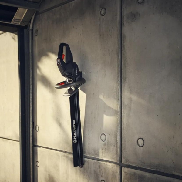 Ergonomic soft grip handle and improved safety with the automatic shutdown when the hedge trimmer is left unattended. Like all tools in the Husqvarna Aspire™ range, it has a sleek black design complemented by orange details that intuitively guide you to all interaction points.